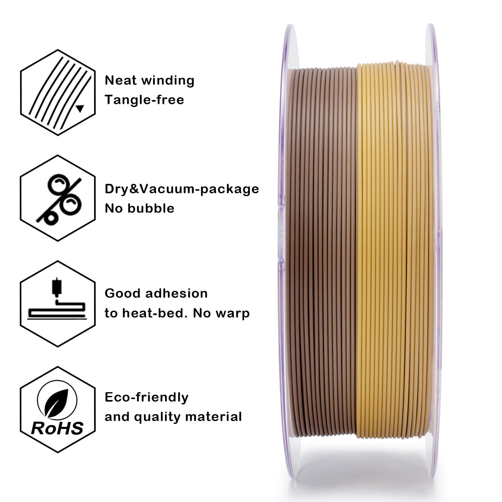 - [Hight Quality PLA]- 3D Craft PLA filament is made of premium raw material with excellent printability: good ductility, higher strength, no odor, no warp, clog-free, and bubble-free. Completely drying for 24hrs before vacuum seal. Allowing 3D printing enthusiasts to create stunning works much easier.